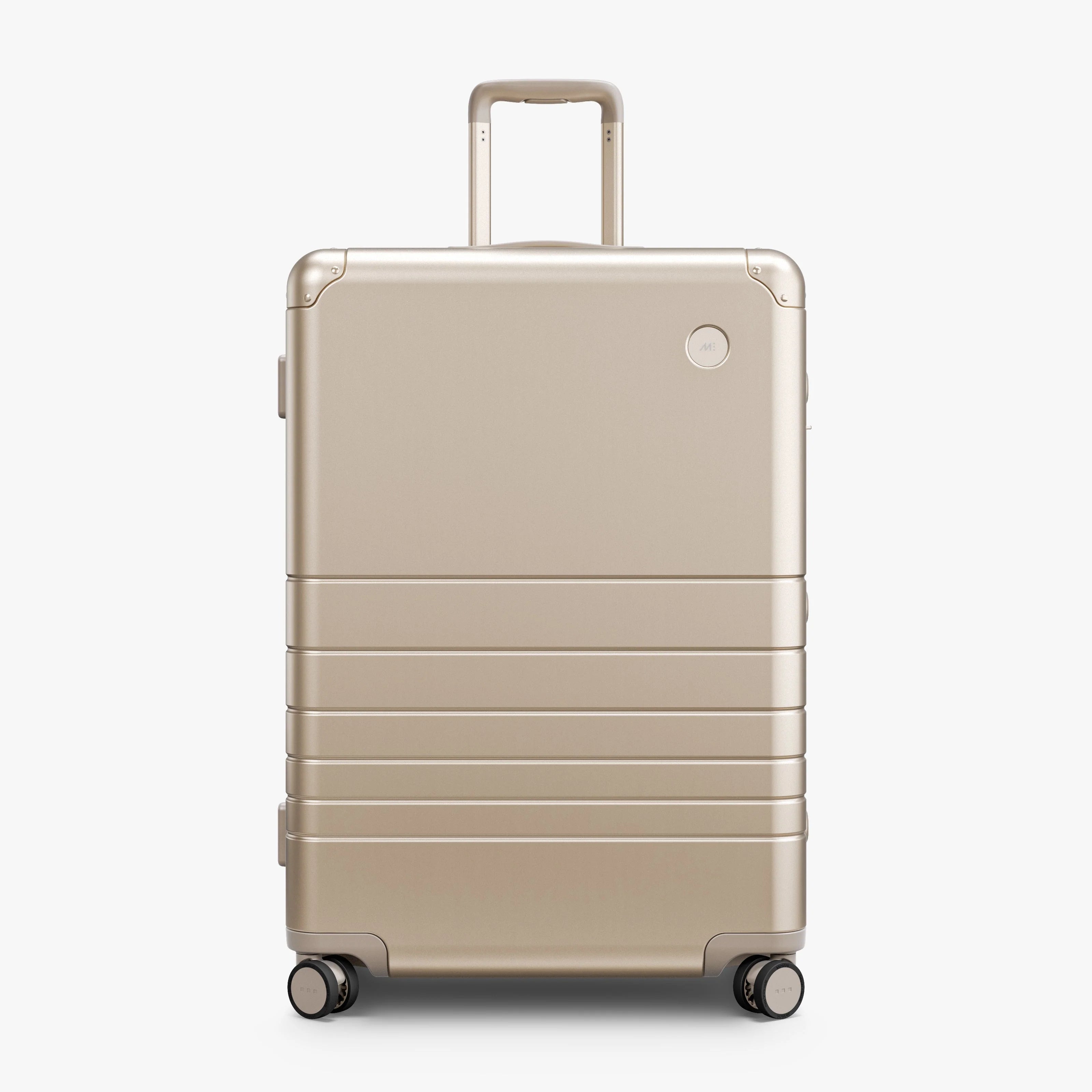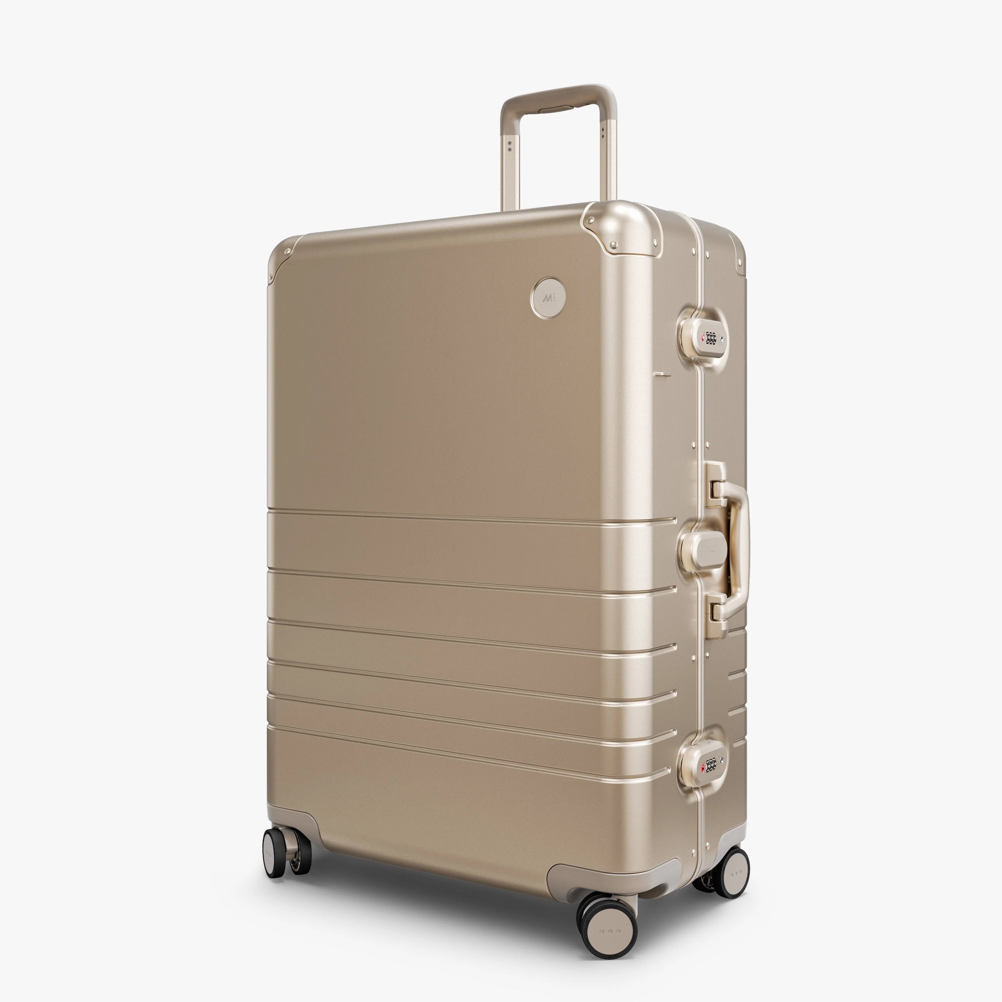 Luxury meets function in the Aluminum Check-In Large, our most elevated offering yet. Crafted from anodized and electroplated aluminum with a refined brushed finish, its hard shell is designed to withstand the demands of travel and evolve with every journey. Inherent to aluminum, the surface will develop a patina over time – each mark adding character, making your suitcase entirely unique to you.