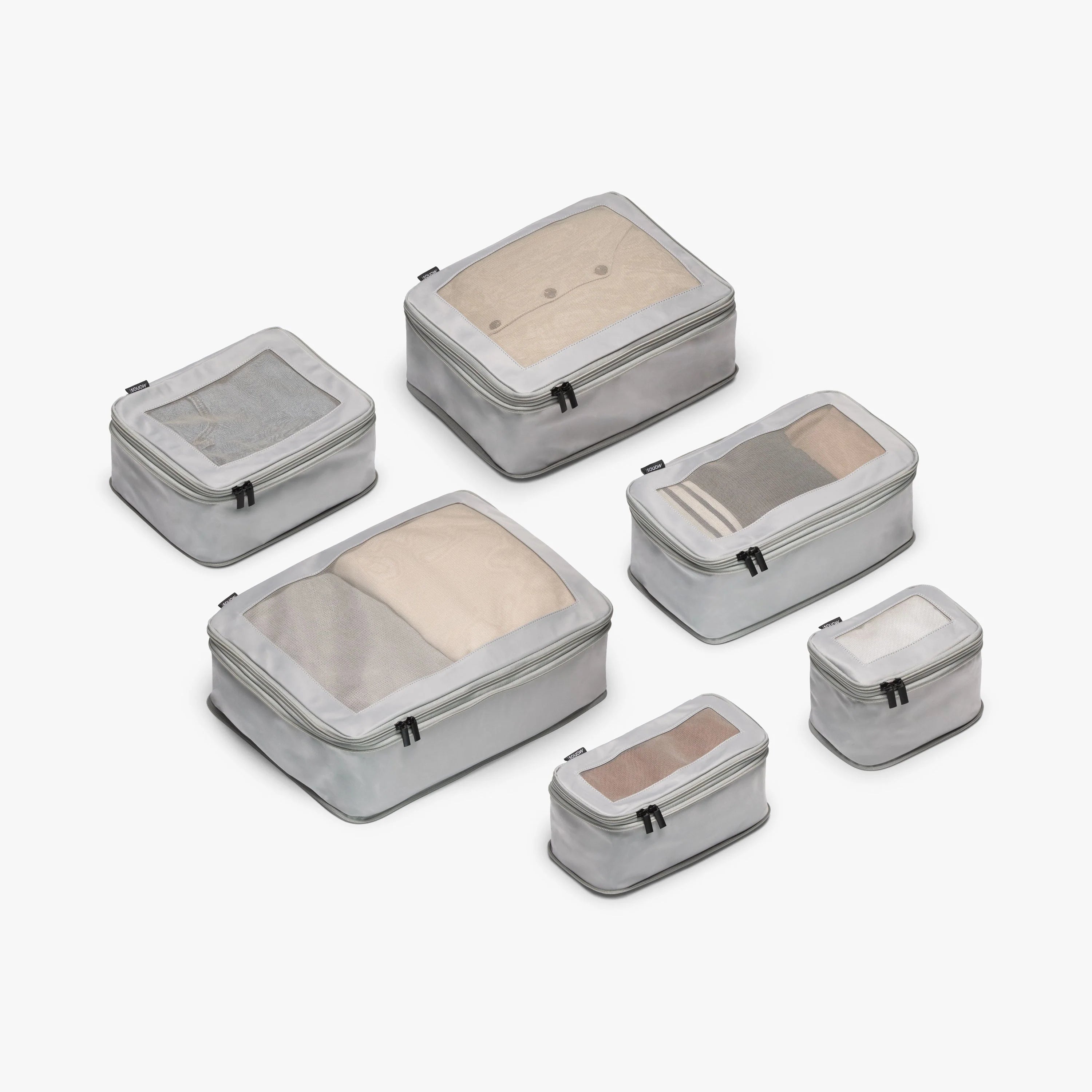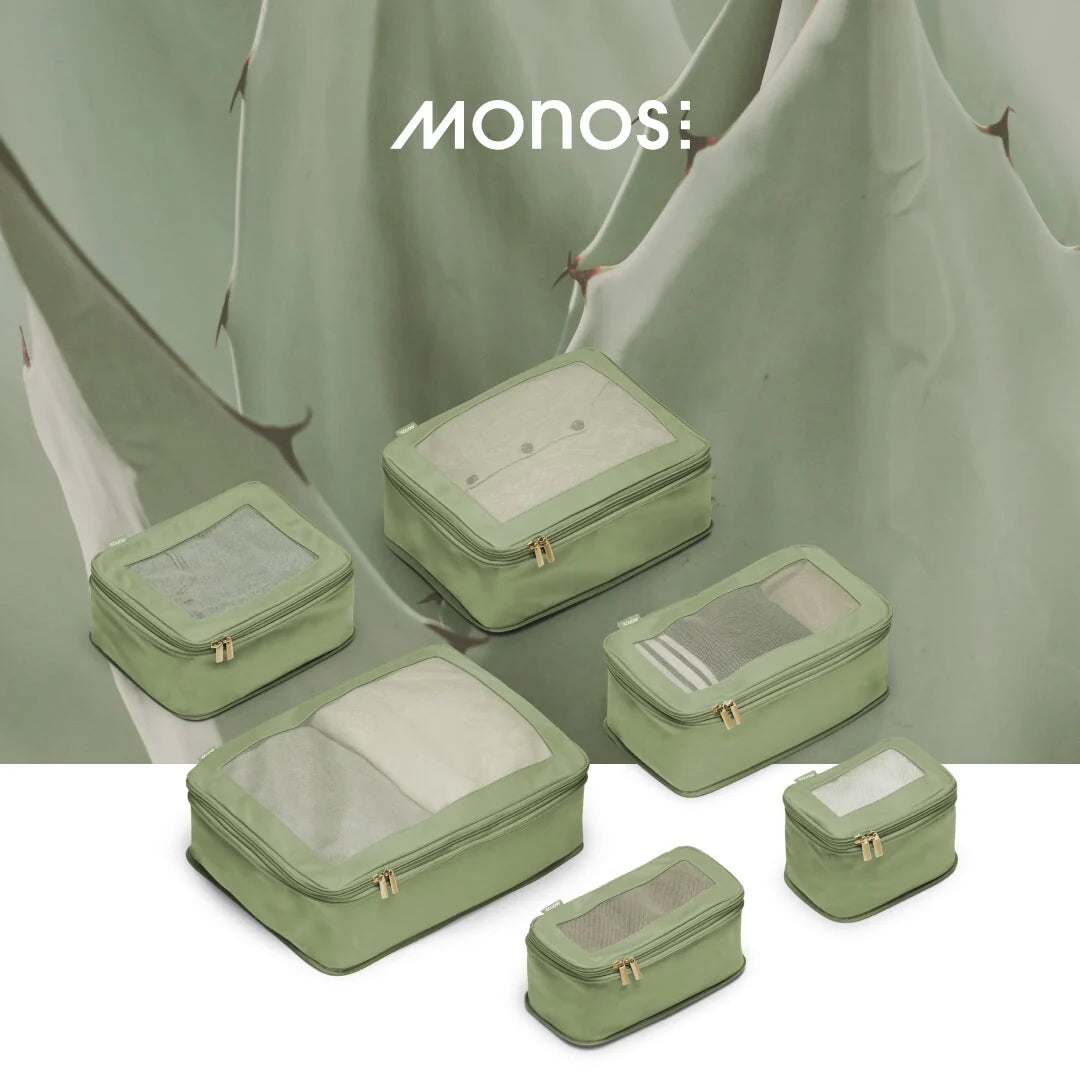 Messy, over-stuffed suitcases are a thing of the past with the Monos Compressible Packing Cubes. Keep your clothes and other items neatly organized and compressed in our well-structured packing cubes, designed to save space and fit perfectly in your Monos luggage (Set of Four fits all Carry-On sizes; Set of Six fits all Check-In sizes).