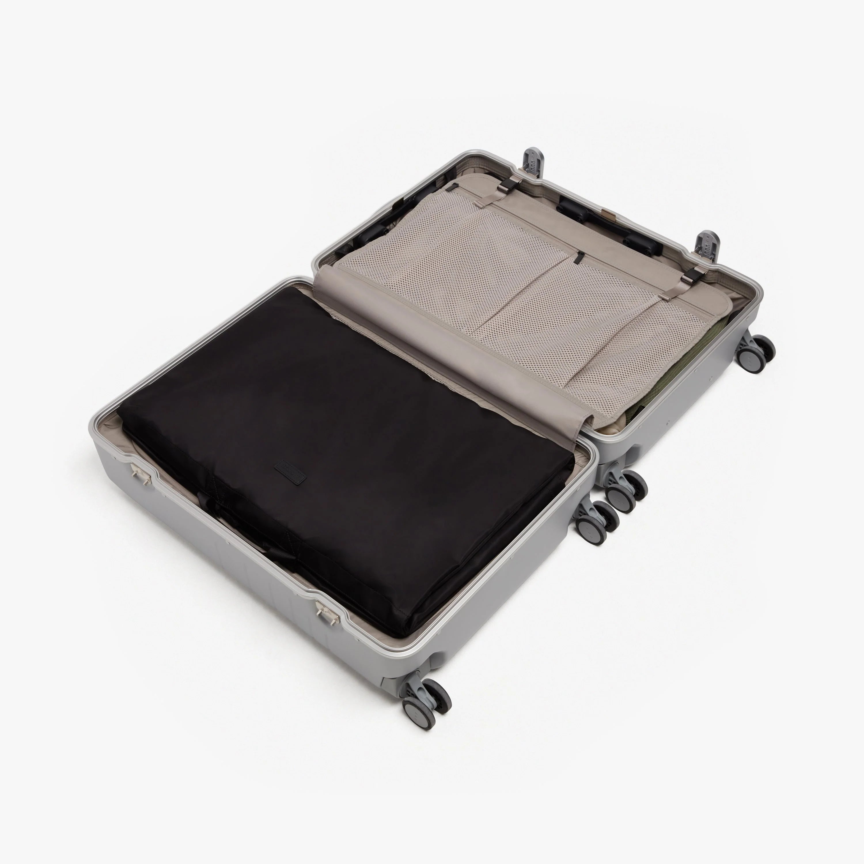 Lightweight and functional, the Garment Sleeve is your companion for carrying dresses, shirts, and suits for business trips, destination travel, and formal events. Designed to minimize wrinkling, the Garment Sleeve easily folds into three parts and can be carried inside of your Monos luggage. Hook loops allow you to pack up to three different pieces, and a handle helps you easily carry and hang. Store accessories or extra items in the small exterior pocket.