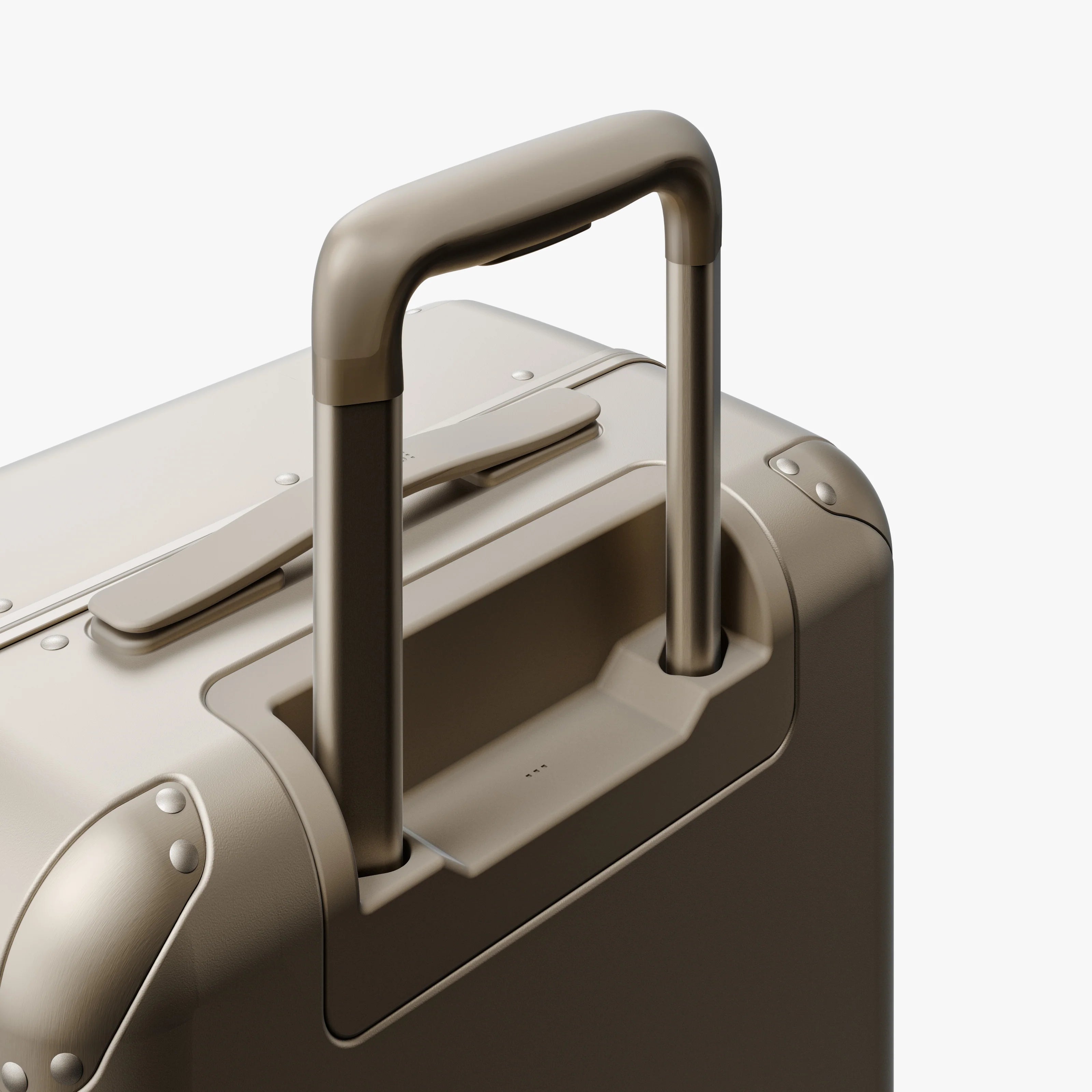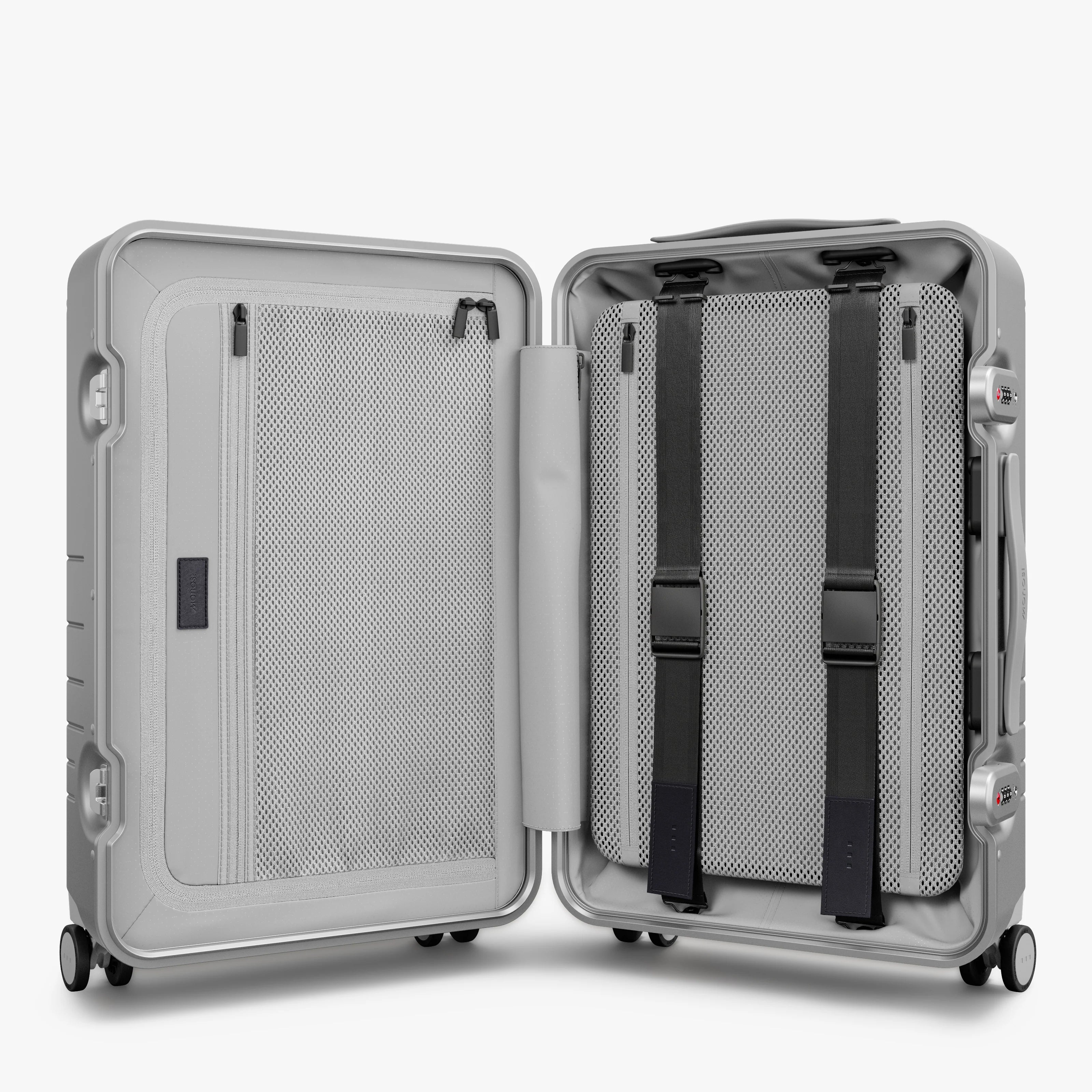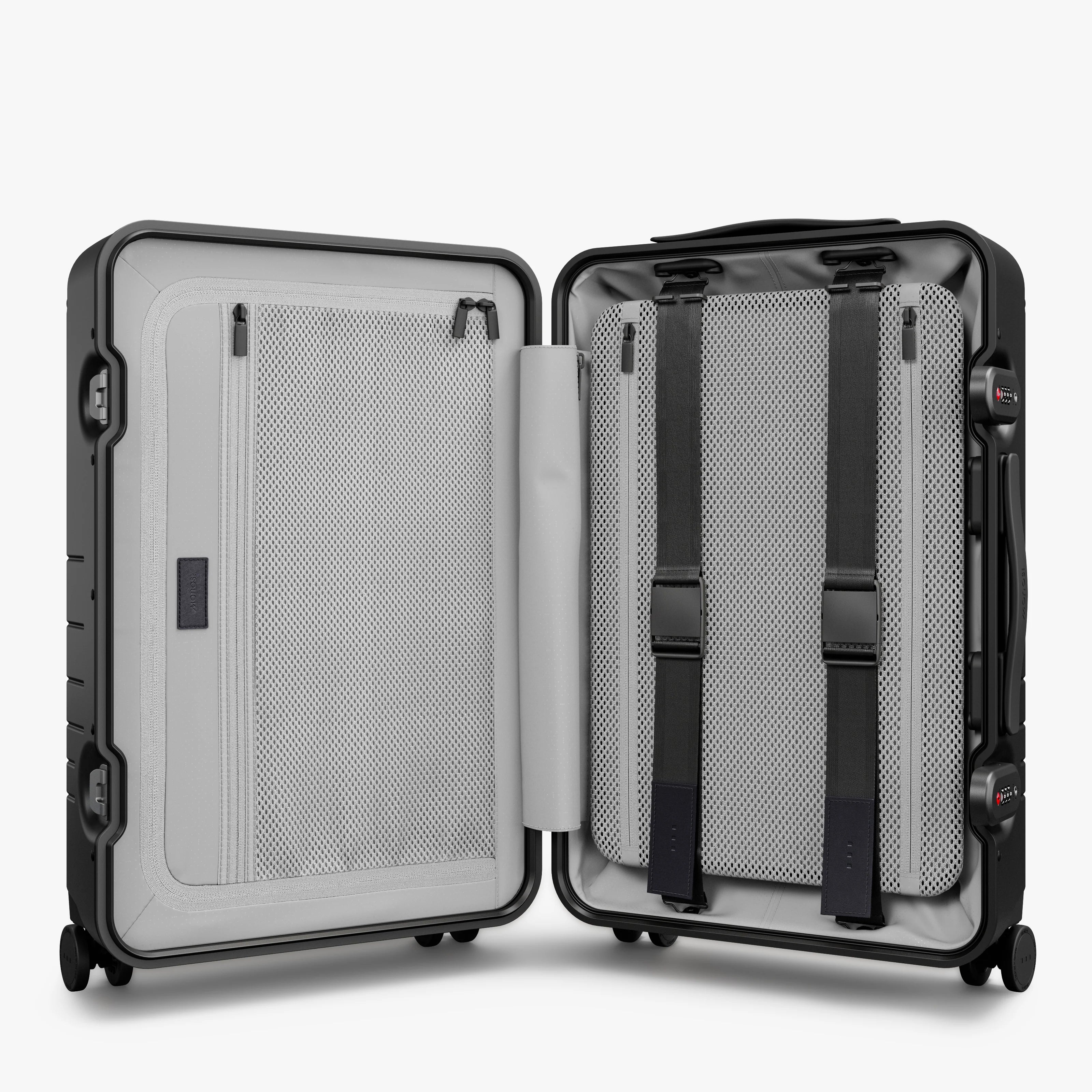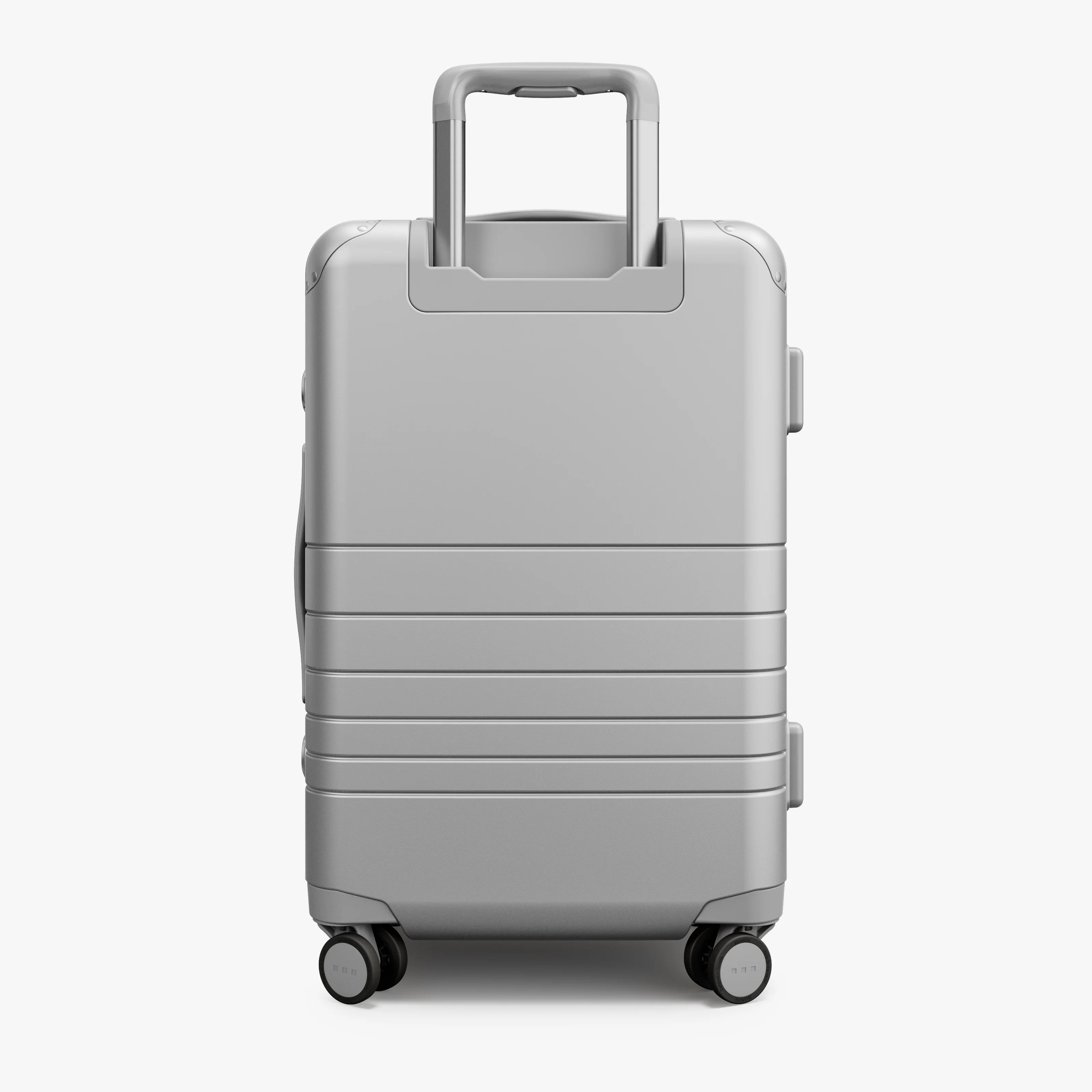 Outfitted with a hard polycarbonate shell that features a refined metallic finish, zipperless aluminum frame, and sturdy, anodized aluminum corner guards, the Hybrid Carry-On Plus is virtually unbreakable. All components have been colour-matched, from the ultra-sturdy telescopic handle to the two TSA-Accepted locks and whisper-quiet wheels. When you’re not travelling, the Hybrid Carry-On Plus nests inside our Hybrid Check-In Large for easy storage.