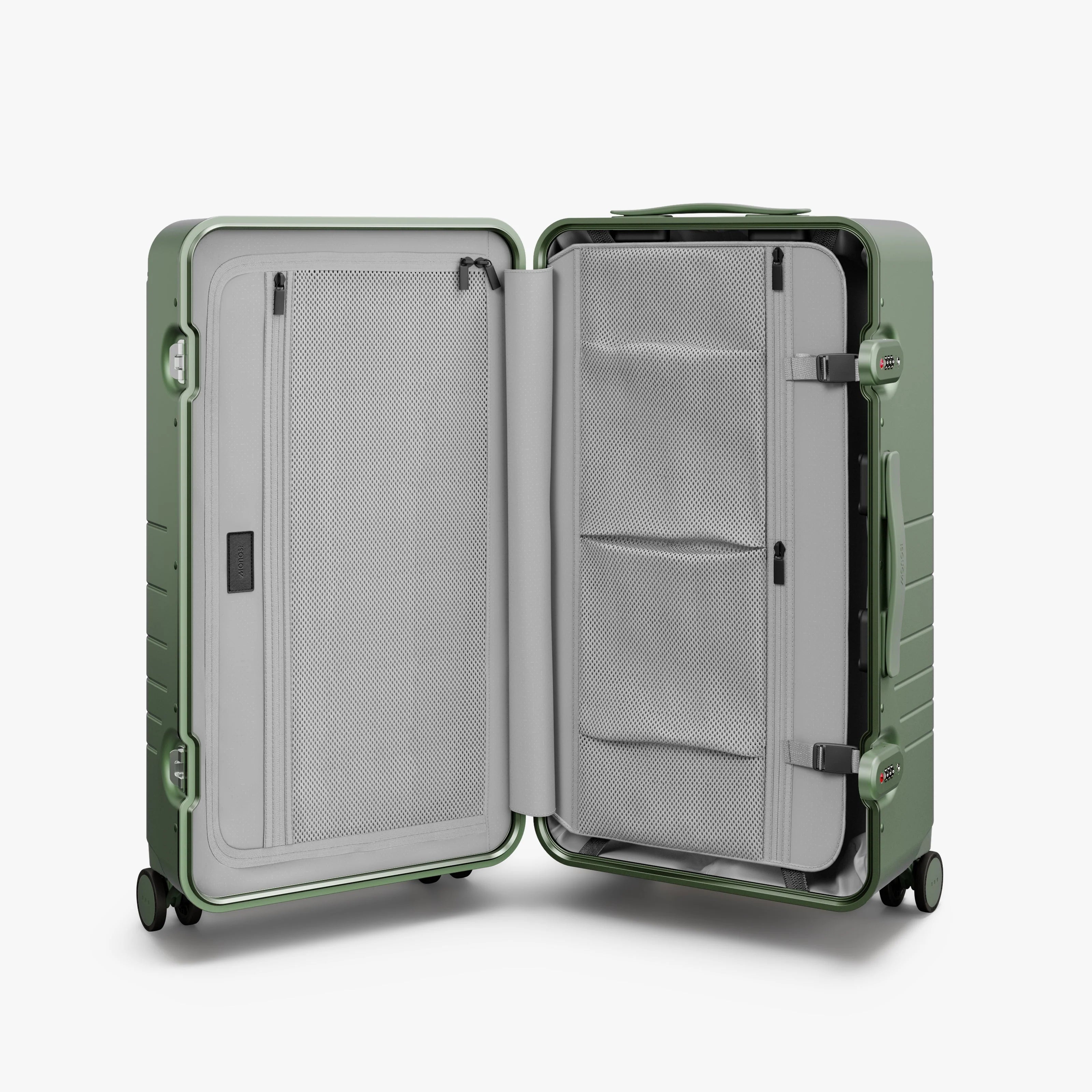 Purpose-built for modern travel, this mid-sized trunk reimagines the timeless shape of early travel cases with a refined, minimalist sensibility. A size down from our Hybrid Trunk Large, it offers 59L of volume – comparable to Monos’ Hybrid Check-In Medium – in a taller, deeper profile that’s ideal for longer trips or bulkier items.