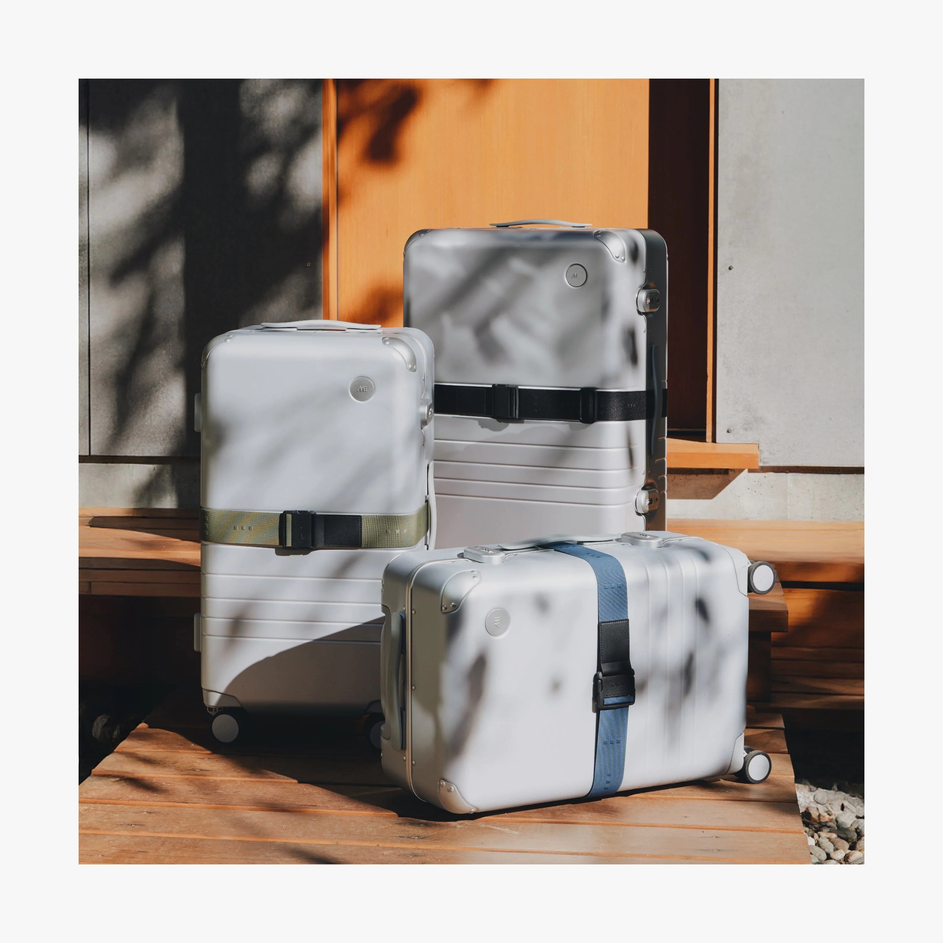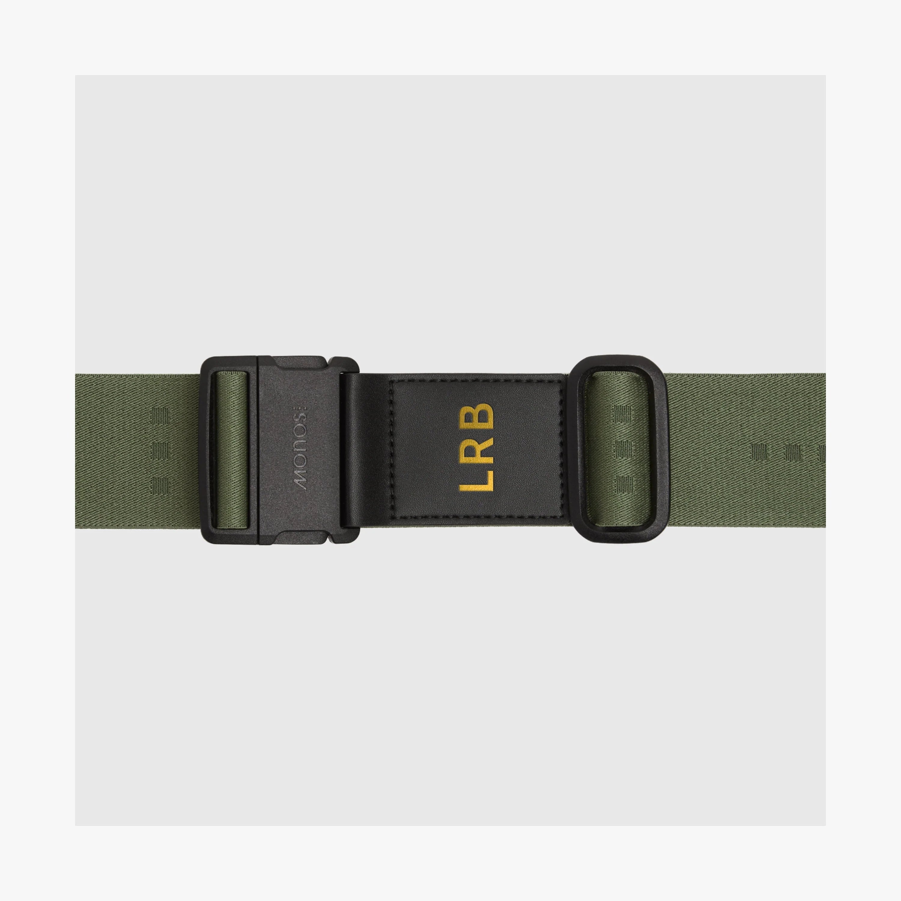 The Luggage Strap pairs a durable stretch elastic strap with our signature three dots in woven jacquard, a recycled nylon side-release buckle, and refined vegan leather accents. Fully adjustable to fit any Monos Carry-On or Check-In suitcase, it can be personalized with monogramming at select retail locations, adding a subtle, personal touch to every journey.