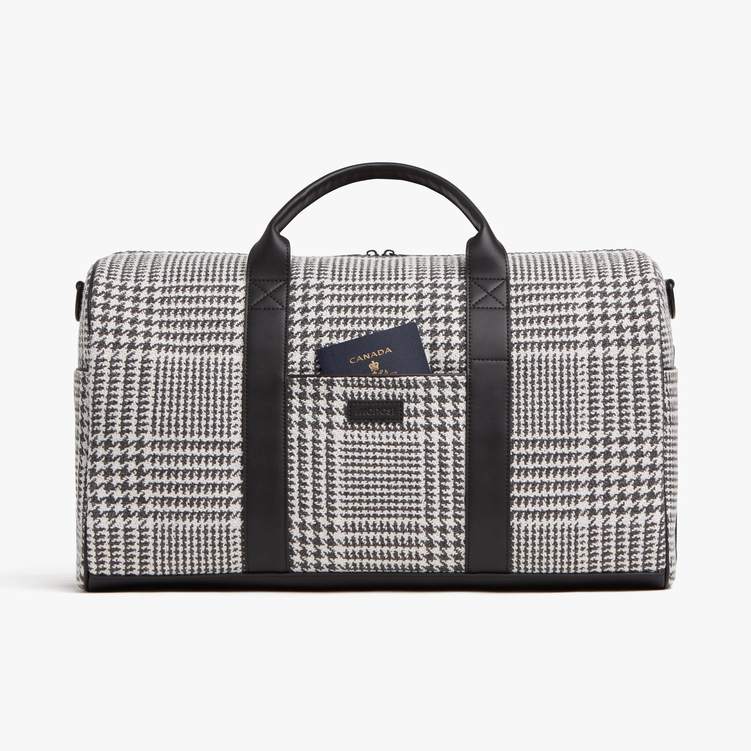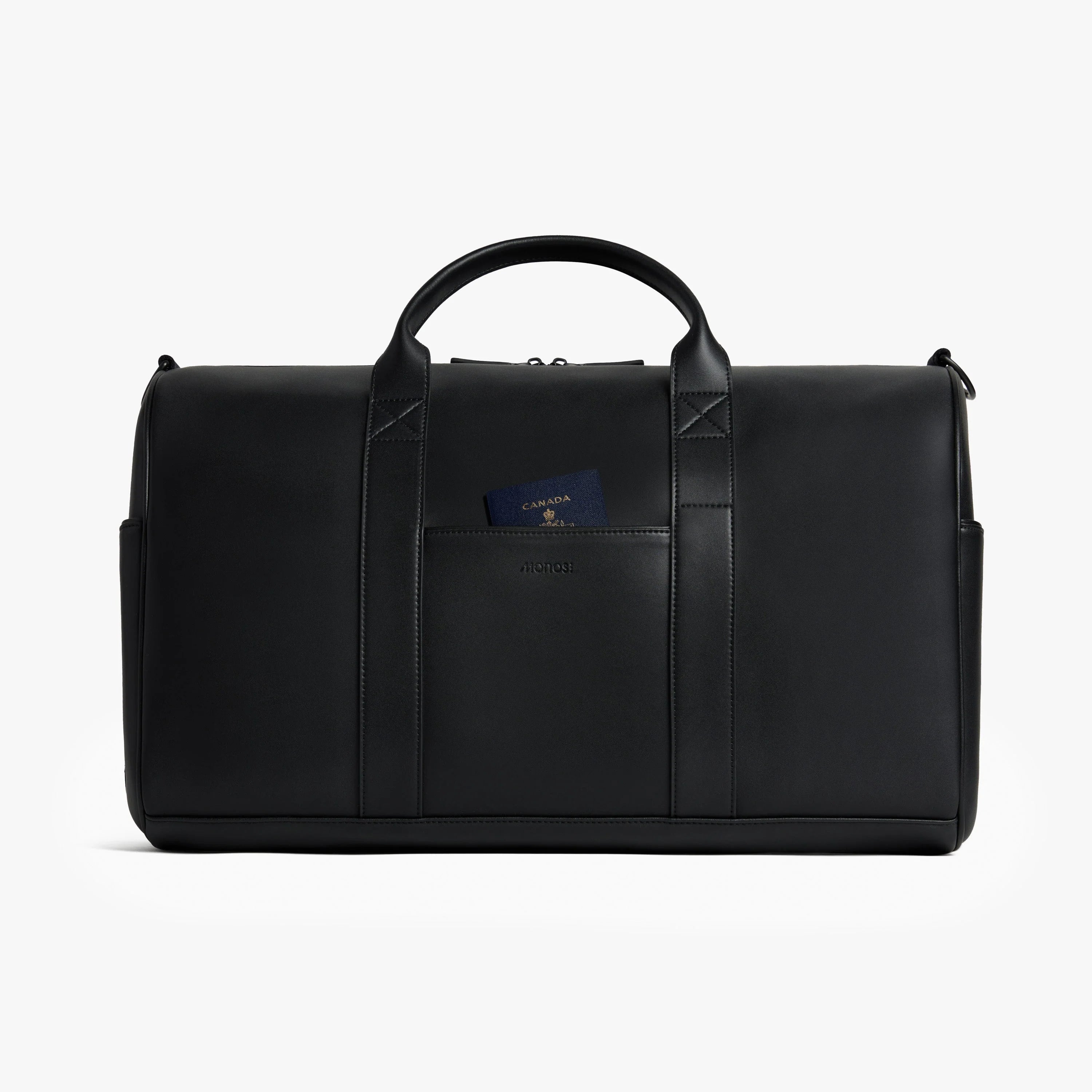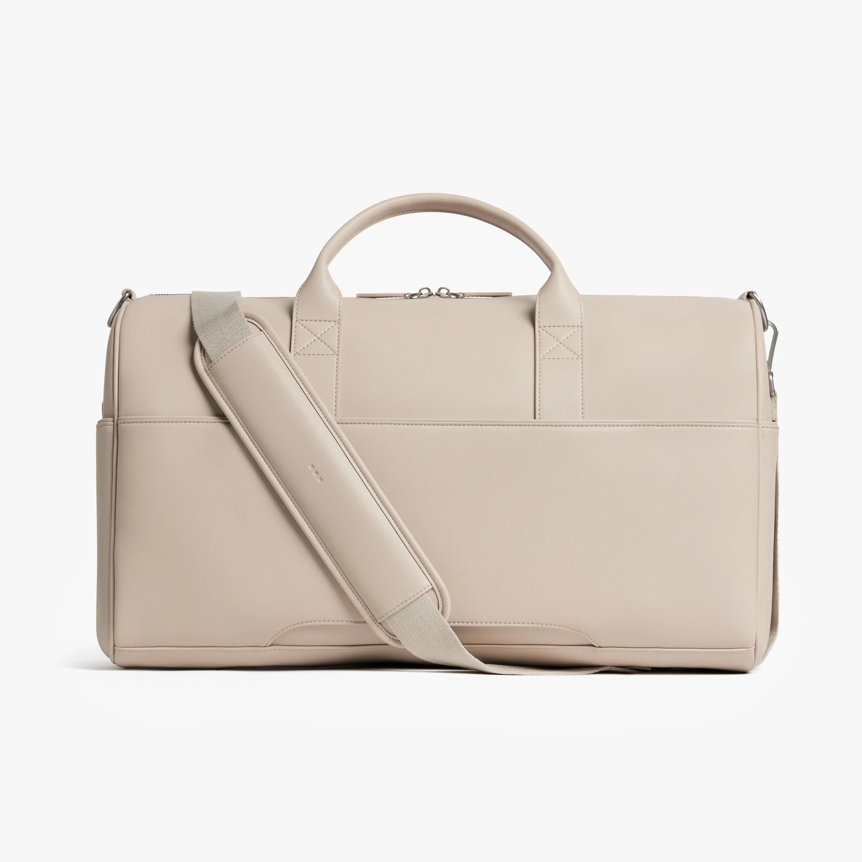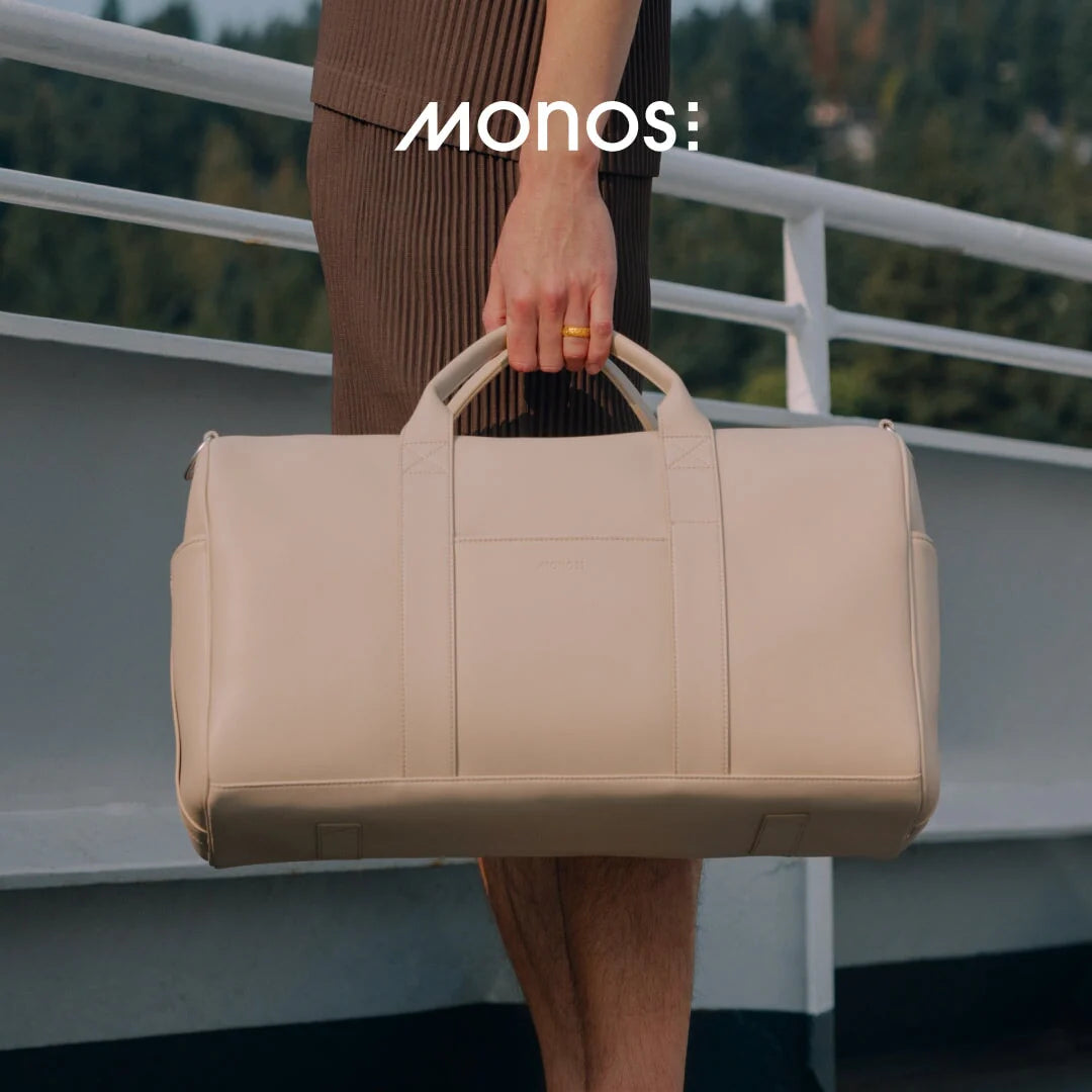 Crafted from ultra-microfibre vegan leather, the Metro Carry-All Duffel features a roomy main compartment with tech sleeve pockets, a secure zippered pocket, and interior water bottle pockets. Two exterior pockets offer extra storage space, and a trolley sleeve fits over the handle of your Monos suitcase for easy pairing. Carry it by using the two top handles or position it over your shoulder with the adjustable padded strap.