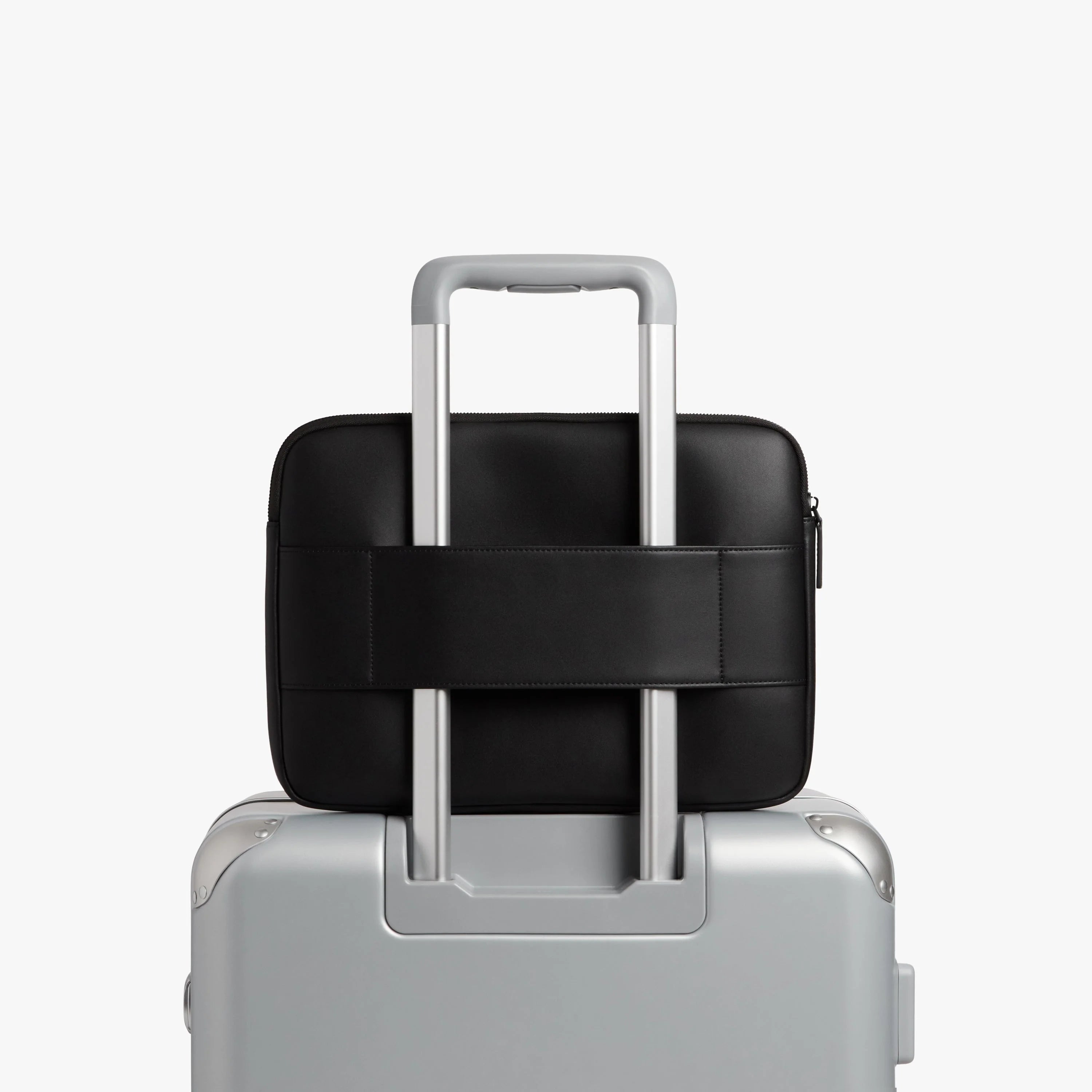 A built-in trolley sleeve fits easily over the handle of any Monos suitcase, or can be used to carry in-hand. The Metro Laptop Sleeve is also designed for easy pairing with any Metro Kit or Metro Belt Bag using the QuickSnap™ Modular Kit System, for on-the-go ease and convenience.