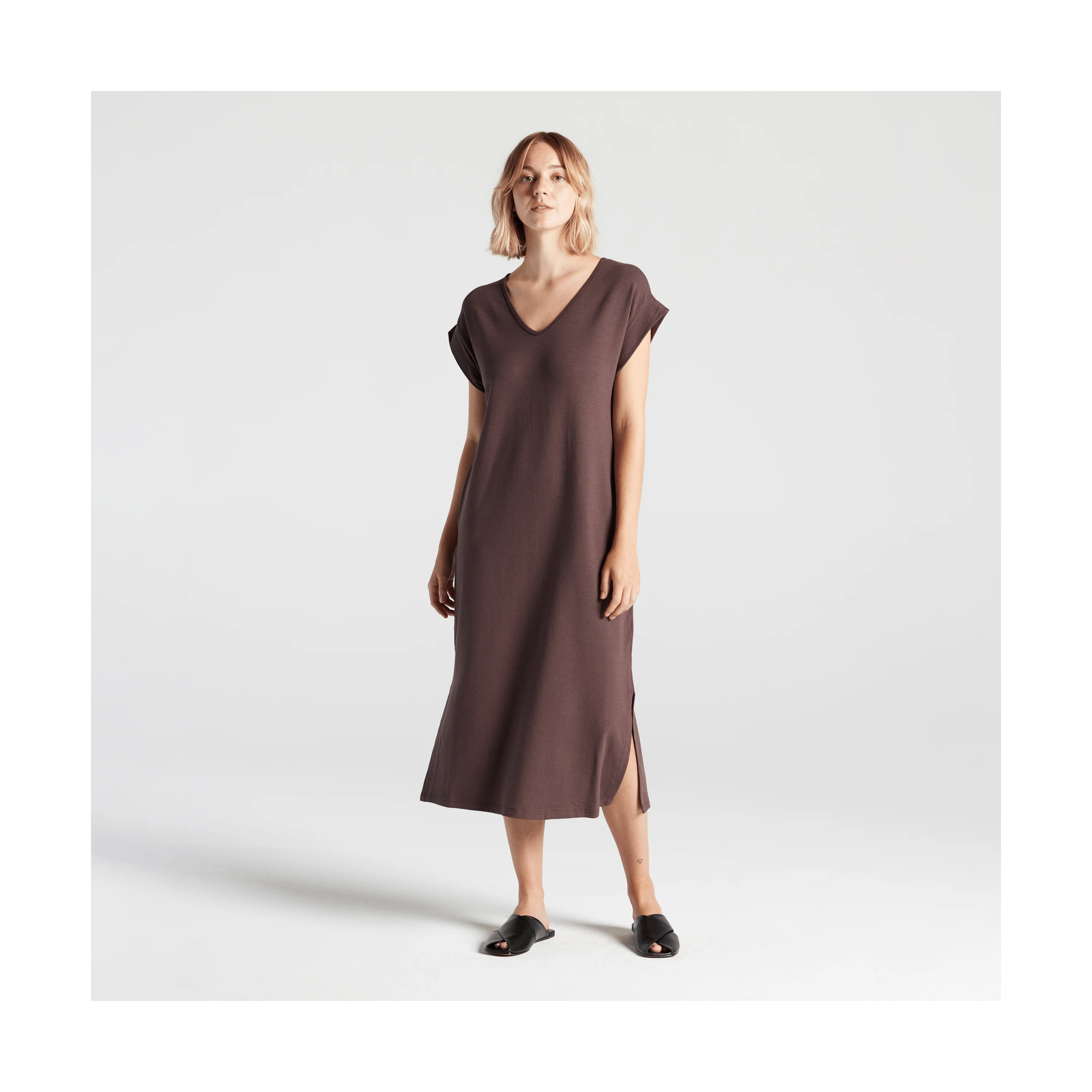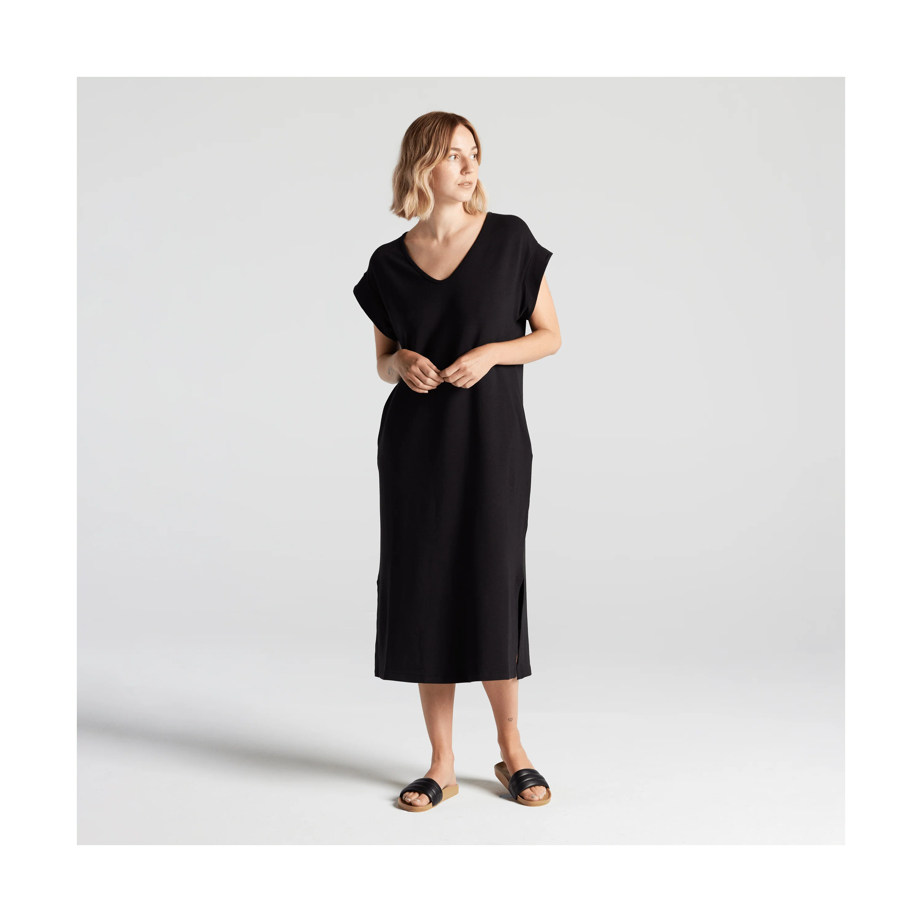 The Sevilla Dress is part of the Everywear collection, our line of classic wardrobe essentials designed for relaxed, comfortable living. Made in Canada.
