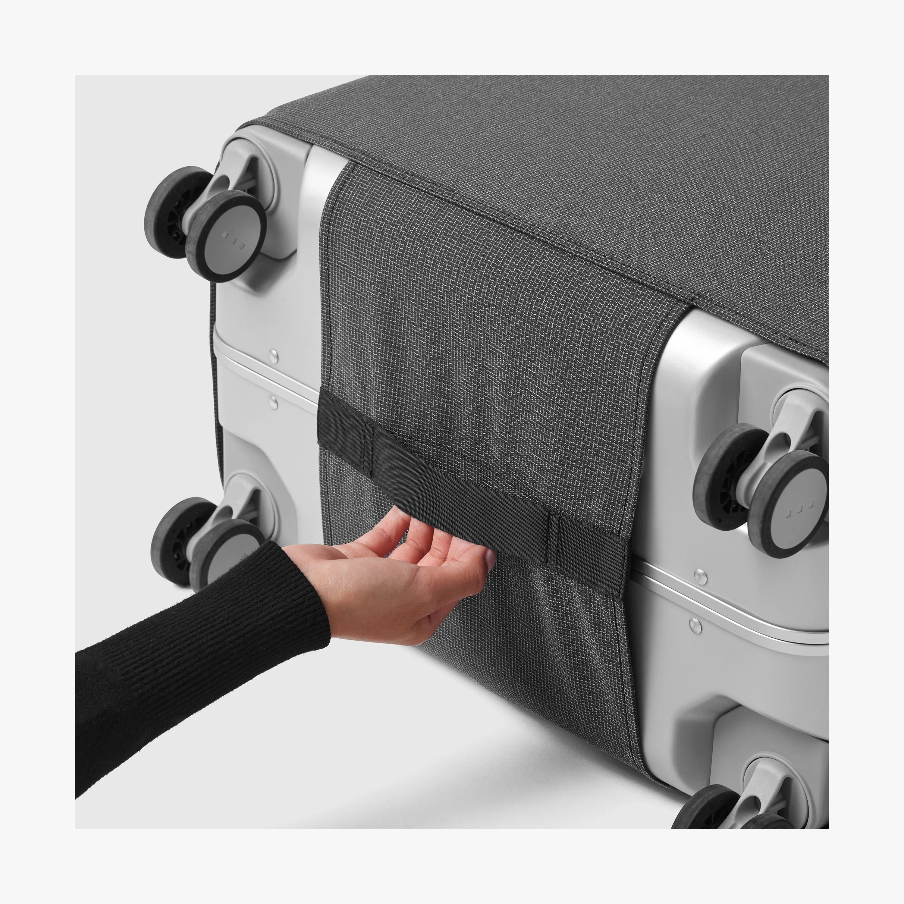 The Washable Luggage Cover, crafted from MonoWeave™ – a durable, high-abrasion polyester that protects hard-shell suitcases from scuffs and scratches. Its raised, two-tone stretch weave absorbs impact, diffuses wear, and masks dirt. Cutouts for handles and wheels, plus a hook-and-loop closure at the base, make it easy to put on and take off – keeping your luggage looking its best on every journey.